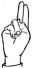 На ћирилици написано ВОЈИН ГРАБОВЧИЋ састоји се из 14 слова [?]. Исписано ћириличном једноручном азбуком за глувонеме: